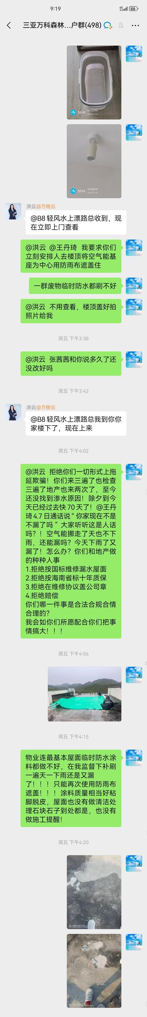 $万科A(SZ000002)$@万物云 三亚万科森林度假公园五期B8栋楼顶因物业热水设备空气能长达八年(2018年始)24小时连续排放凝结水导致楼顶部分区域长期积水,太阳能连接管长达四年(按青苔厚度推算)漏水如注初步估算总计漏水2500吨!热水收费12元/吨物业必须赔偿业主!长期严重积水致大面积青苔厚度60mm以上,25年初我领海南物业大领导王丹琦贾林等多次现场查看督促解决,令人气愤的是物业拒绝处...