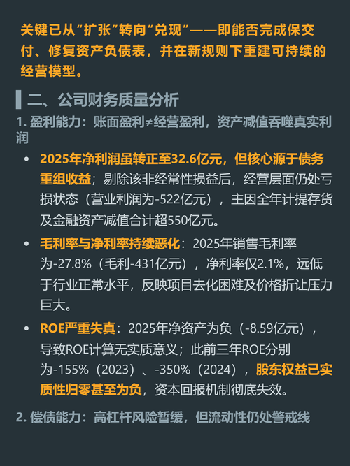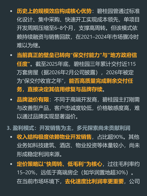 $碧桂园(HK|02007)$$万科A(SZ000002)$$保利发展(SH600048)$别被碧桂园2025年净利润转正的消息骗了,这公司的生存压力远没有解除。 过去碧桂园靠三四线高周转模式做到行业前三,现在行业规则已经彻底变了,从拼规模转向拼现金流和交付能力。过去三年它累计交付了115万套房屋,今年是保交付收官年,能不能把剩下的房子高质量交完,直接决定它还能不能在行业里待下去。 看上去好看的净...