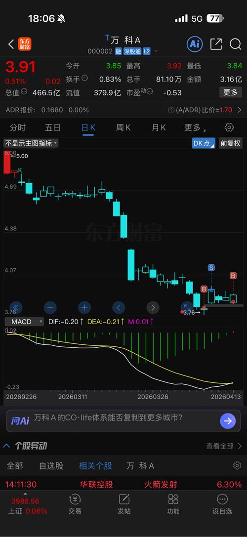 $万科A(SZ000002)$MACD金叉,有肉吃吗?
