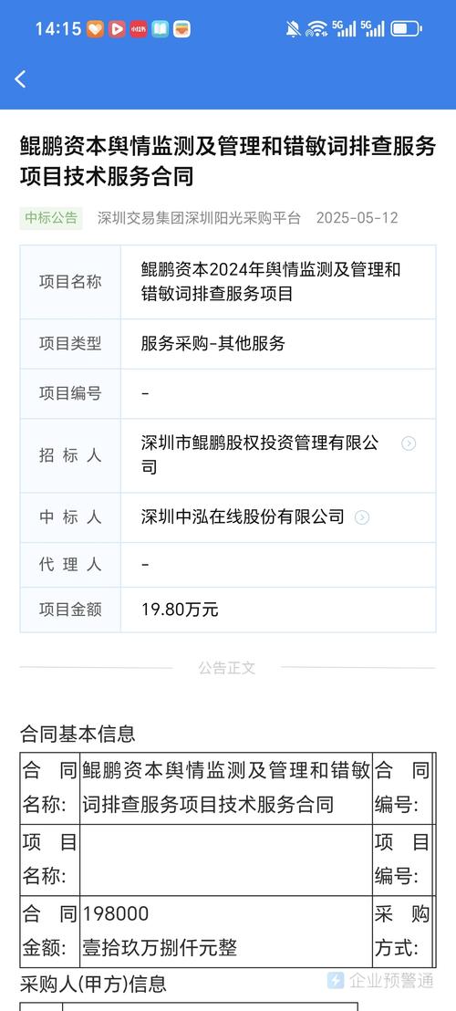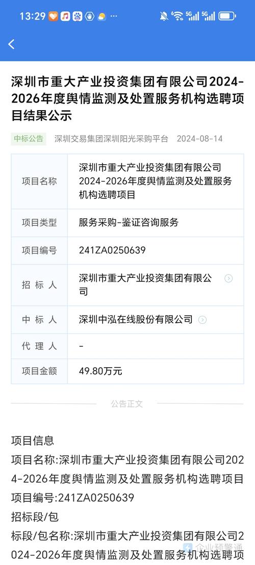 $深振业A(SZ000006)$ 开源情报2:振业舆情服务项目采购 本作品所含内容均为公开披露信息,不作为投资建议。投资者谨记投资行为三自有原则(思想自有、资金自有、盈亏自有),三自主原则(买入自主、卖出自主、仓位自主)。 平台舆情管理严格,留言请注意措辞。