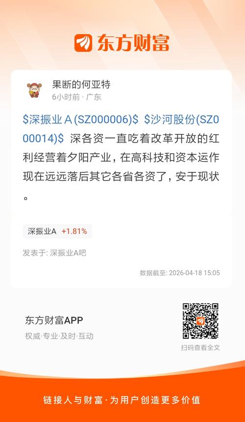 $深振业A(SZ000006)$$沙河股份(SZ000014)$深各资一直吃着改革开放的红利经营着夕阳产业,在高科技和资本运作现在远远落后其它各省各资了,安于现状。
