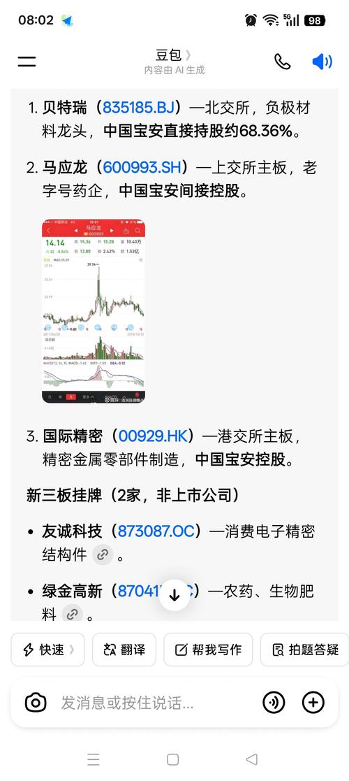 $中国宝安(SZ000009)$收购宝安就等于收购了贝特瑞和马应龙,而且不了多少钱8亿股就能全面控制,10块一股就等于80亿,要知道贝特瑞一个信誉贷款就能贷到42亿,这比钱非常划算。