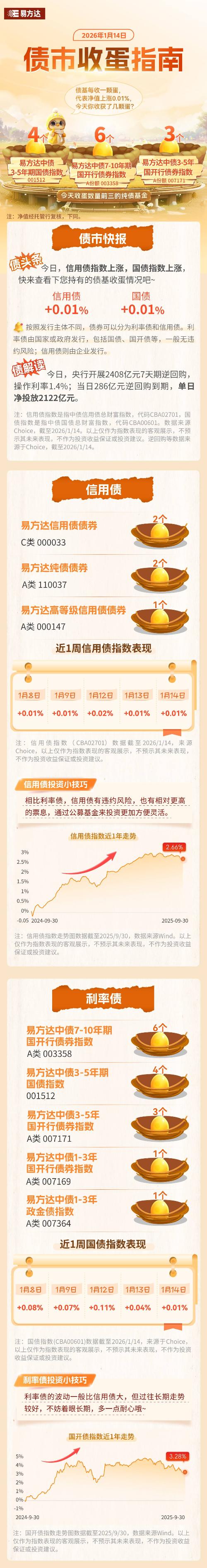 1月14日,信用债指数上涨、国债指数上涨,快来查看您持有的债基收蛋情况吧!#AI应用元年开启!概念股持续走强##2025超额关键词##债市收蛋指南##债市剧烈调整,何时见底?#$易方达高等级信用债债券A(OTCFUND|000147)$$易方达信用债债券C(OTCFUND|000033)$$易方达信用债债券A(OTCFUND|000032)$$易方达纯债债券A(OTCFUND|110037)$$易方达中债1-3年政金债A(OTCFUND|007364)$...