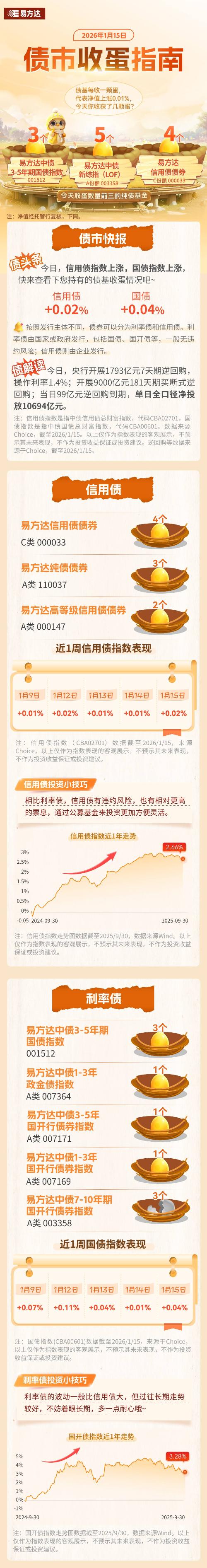 1月15日,信用债指数上涨、国债指数上涨,快来查看您持有的债基收蛋情况吧!#AI应用元年开启!概念股持续走强##2025超额关键词##债市收蛋指南##债市剧烈调整,何时见底?#$易方达高等级信用债债券A(OTCFUND|000147)$$易方达信用债债券C(OTCFUND|000033)$$易方达信用债债券A(OTCFUND|000032)$$易方达纯债债券A(OTCFUND|110037)$$易方达中债1-3年政金债A(OTCFUND|007364)$...