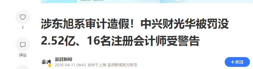 邀您观看:16名注册会计师受警告财政部对中兴财光华作出重罚(记者:伊妹儿)