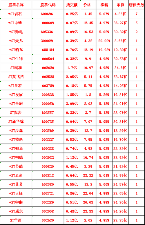$*ST中岩(SZ002542)$$*ST中岩(SZ002542)$ $*ST皇庭(SZ000056)$$*ST发展(SZ000838)$低价新st第一天就涨停。5厘米还两个月时间珍惜低价st的 炒作。