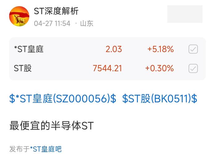 $*ST皇庭(SZ000056)$$ST股(BK0511)$ 最便宜的半导体ST