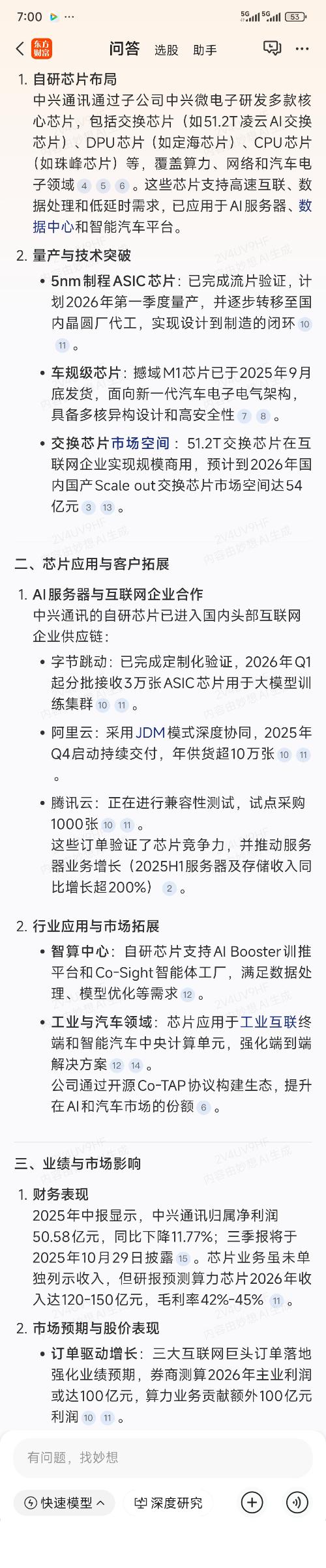 $中兴通讯(SZ000063)$中兴股价今明两年上200可能吗?豆包讲,中兴芯片26一28年的营收和净利高于寒武纪和海光信息,仅此一项股价明年上200都很容易