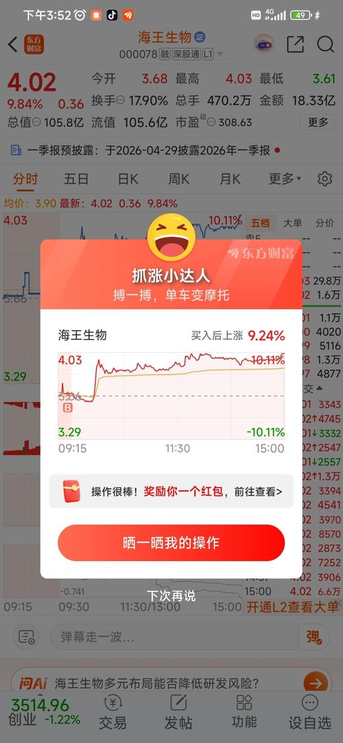 $海王生物(SZ000078)$家人们,这个明天有机会吗?怎么看啊