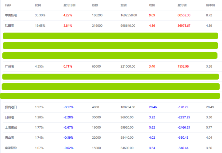 抄了点秦港,买回招商港口,加了一笔广州港,然后盐田港胡乱T了几笔总体仓位和昨天收盘持平成本降低2分