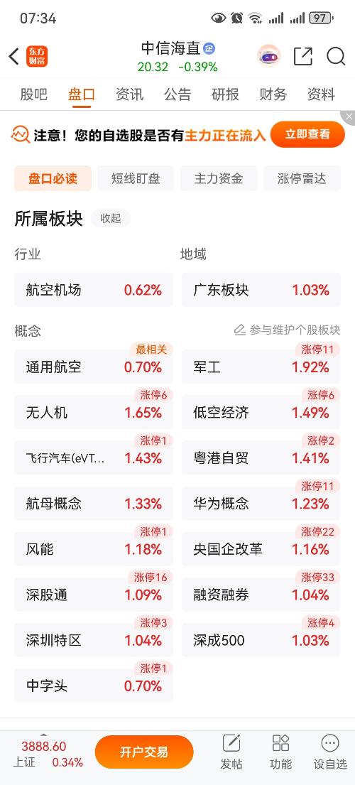 $中信海直(SZ000099)$所属的板块全是红的,唯独你是绿的,你到底属于什么板块呢