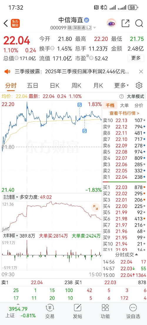今天开始买入中信海直,三季报同比环比都增加,而且调整时间也差不多了,低空经济该来一波了。
