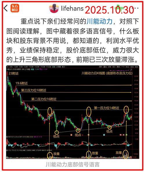 $川能动力(SZ000155)$个人观点川能动力震幅向上,第一压力位看21.3和23.3位置,到达压力位如放巨量要注意二点:(第一点日线级别放巨量价格上涨先不卖,看第二天价格过高就继续持有)(第二点如到压力位放巨量第二天开盘快速冲高回落,建议快速卖岀)建议中线持有