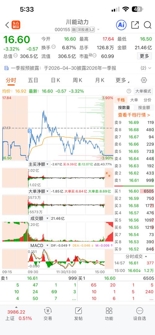$川能动力(SZ000155)$昨天出了一半,今天走成这样必须出了,盈利850元