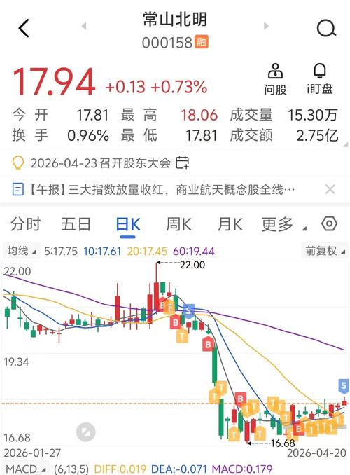 还记得22块钱的时候摸了一下,然后一路跌到16.82,现在18突破不过去.猜猜下一关在哪???