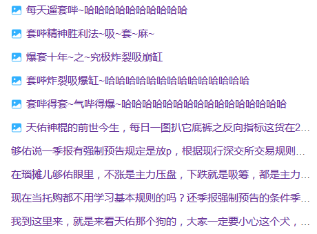 股吧里啥奇葩都有,自己水平差赚不到钱,怨天佑,虽然我也不喜欢他,但愿赌服输,没必要让天佑成为背锅侠!!!
