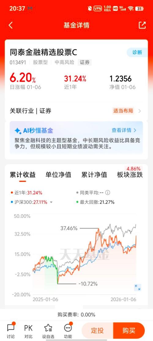 券商板块政策与资金双重共振!同泰金融精选专注券商板块,今日涨超6%。中央汇金增持+保险资金入市,增量资金持续涌入,券商板块红利可期,买券商选金融精选~$同泰金融精选股票C$ #1月基金投资策略#