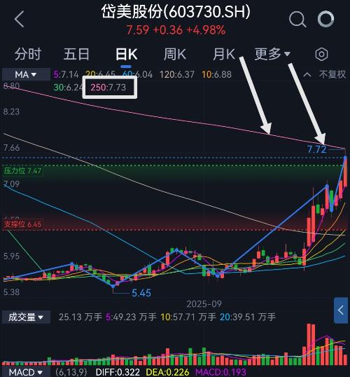 $上证指数(SH000001)$市场活力不强,目前继续观战,或者小仓位尝试#社区牛人计划# $岱美股份(SH603730)$年线压力位的测试,岱美的第一次冲锋强阻力位,本篇开放评论~ 目前,岱美股份的盘中最高价7.72,碰到年线【7.73】强压力位置迅速回落,目前是正在试探上攻中~ 再次落下来,回踩120日,仙女宝考虑打底仓