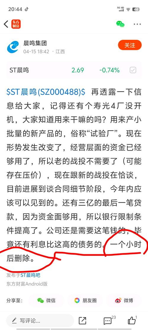 $ST晨鸣(SZ000488)$大妈天天喜欢故弄玄虚,每天yy出来的消息,还一个小时删除,估计一天也不想删除。又沉浸在小迷弟一声声好棒棒的声音当中了
