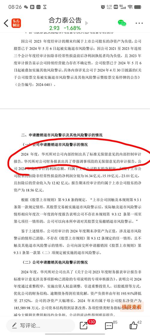 $ST晨鸣(SZ000488)$大家最大的疑惑,公司到底能不能摘帽?最主要一点就是戴强调事项的无保留意见,剩下的两条(想必没意见,全面复工,内控标准无保留)给大家举个例子戴强调事项的无保留且三年扣非为负的到底能不能摘,上个案例给大家看看合力泰。