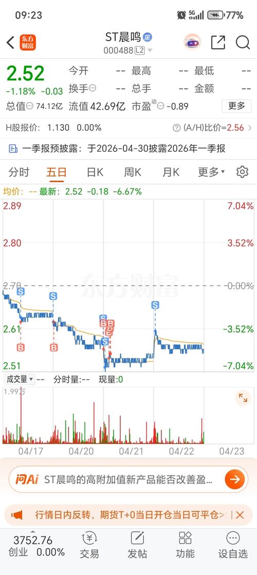 $ST晨鸣(SZ000488)$演一天。三点收个-0.39