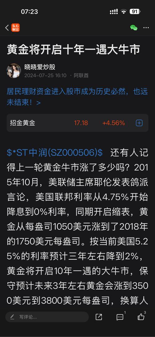 持有st中润快2年了,st中润是我炒股生崖唯一一只押中的15倍股并持有到现在,虽然总共才15万股,不过还是要感谢2年前自己的坚持。几十个跌停后天天利空消息轰炸下,买入st中润也是基于2015年做过紫金银和黄金现货,当时就觉得如果未来老美将息之下,黄金一定会开启一轮牛市,而中润有金矿,肯定会反转,所以在1元附近买入后一直没动,多少次也曾想过是不是到顶了,是不是该获利了结,结果回调后又有新高,索性就不...
