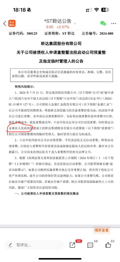 $招金黄金(SZ000506)$ 为何聆达能提前完成“双回复函”(图1、2)全部整改完毕? 为何聆达敢于担当st板块的首支最早发布三季报?(图3) 终于找到答案:原来重整管理人是金寨人民政府(图4),难怪这么牛X。 双回复函的重大意义是:表明地方上已经完成检阅,干干净净,就可以走下一道程序:报送最高人民法院、等候裁定了。 所以昨晚的双回复函公告,是重整成功的关键一步,可以说一只脚已经踏进了成功的门...