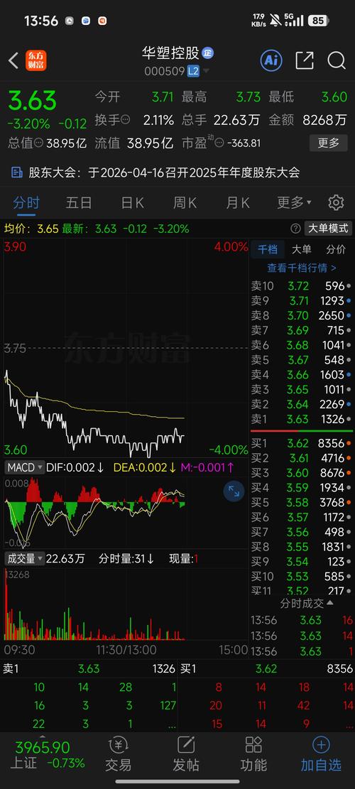 $华塑控股(SZ000509)$ 2026年4月7日 今日缩量收3.62元,属包含K线,暂时止跌,但方向未明。继续观察[3.46,3.71]区间的突破方向及量能变化,另5日线情况。 继续持有中,不打算割肉。