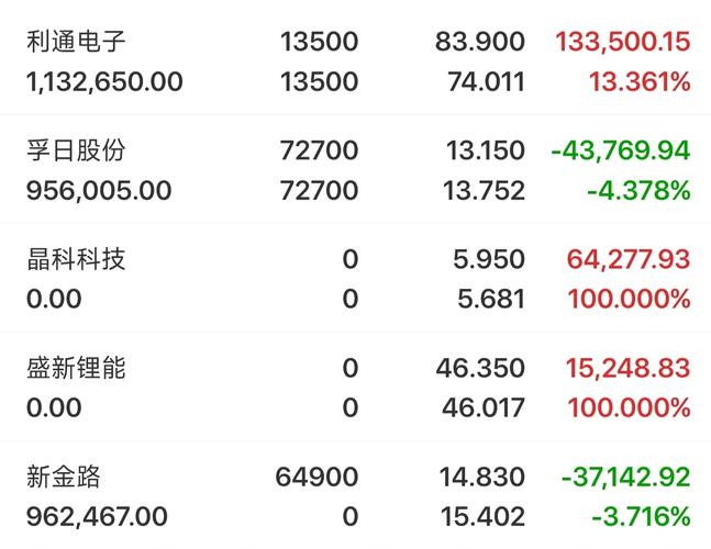 目前持仓: $利通电子(SH603629)$:早盘表现还不错,今日突破新高后调整,午盘有望继续冲高走强,耐心等待即可 $孚日股份(SZ002083)$:今天也是给盟主打的措手不及,不过问题不大,洗洗更健康吧,看看明日能否反弹 $新金路(SZ000510)$:今日虽不及预期,但盘中还是有部分承接的,午盘有望吹响反攻的号角 早盘出局:晶科科技盛新锂能 (个人观点,仅供参考,据此操作,责任自负)