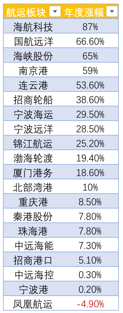 航运板块今年走势$
