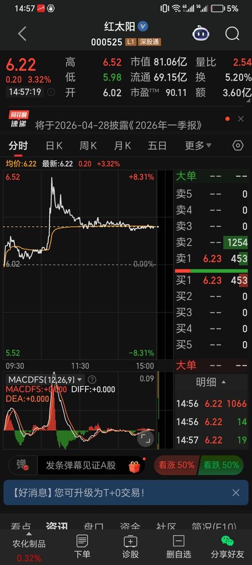 $红太阳(SZ000525)$三万股给主力了,破六再来