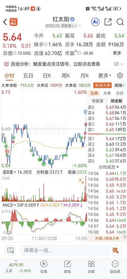 $红太阳(SZ000525)$今天进场了,上午买早了,5.64买到,尾盘收上来亏了11.4元手续费,向下最多跌到5.20元,就想看看一季报是不是我预测的盈利5000-7000W,比去年增110%-150%,就说这么多了,下周一晚上8点验证预测结果