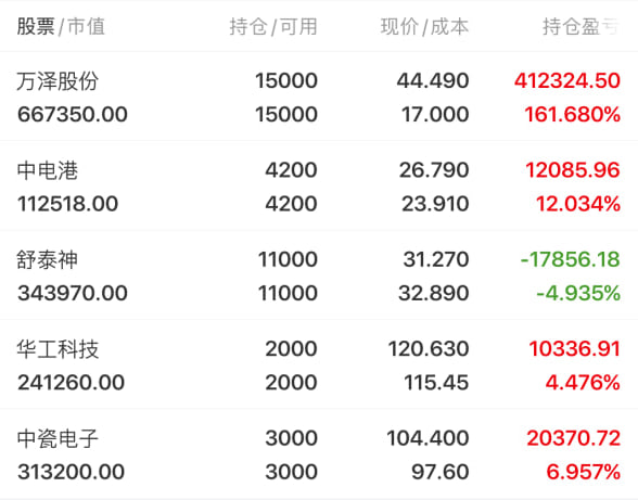 终于到周末了,这周的情况我自己还是非常满意的,有时候真的太喜欢自己了,怎么就这么厉害。 商业航天前面的神剑股份让我等到了,现在手里的万泽也是拿的稳稳的,今天打板了没有动。大元泵业做的也是非常准确,今天落袋了这一口肉算是吃上了,想必宝宝们也都喝了口汤。 今天的cpo是比较热的但是我还是谨慎了一些,今天下午选择进了天赐材料,锂电池。龙磁科技也落袋了。$万泽股份(SZ000534)$$天赐材料(SZ002709)$...