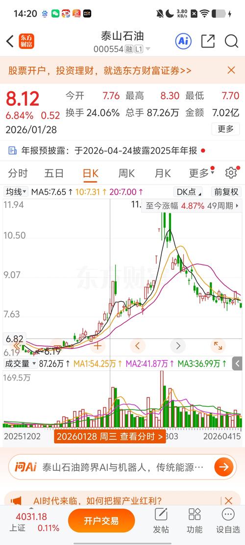 $泰山石油(SZ000554)$8.52卖了8.02接回来,市值不算太高业绩好就行。随便大资金砸盘。