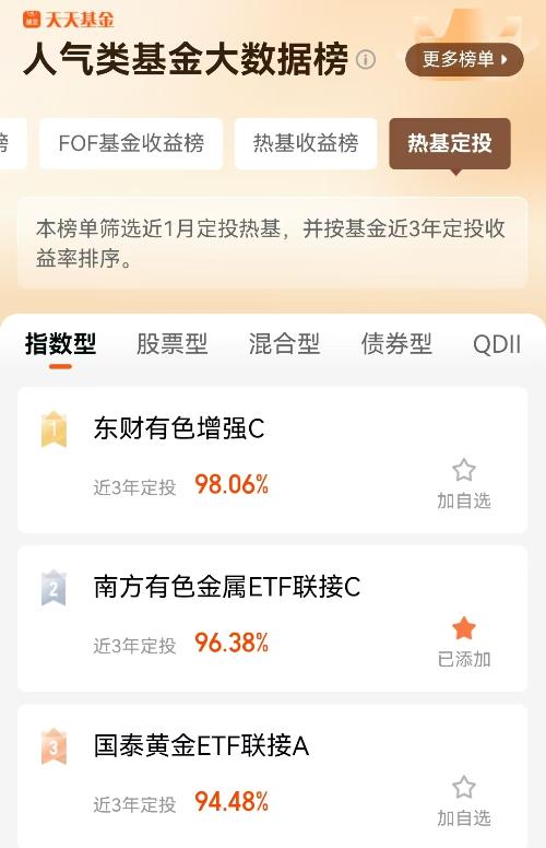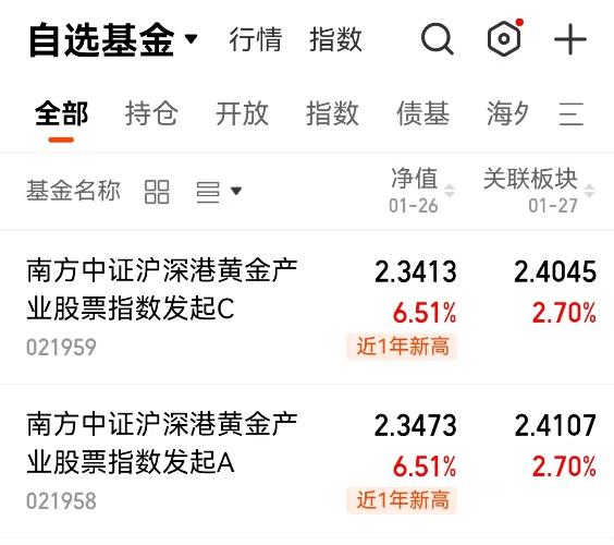 看一个基金好不好,关键看业绩能不能持续。$南方中证沪深港黄金产业股票指数发起A$(021958)这个黄金产业链基金,近6个月同类排名第一,而且已经连续六期了,近1年也排第一,说明不是昙花一现。近一个月涨31%,近半年涨82%,这业绩确实能打。现在金价突破5000美元了,还在涨,这种基金投的是黄金产业链公司,金价涨这些公司业绩好,基金也跟着涨。10块钱就能买,门槛低,费用也比直接买金划算。想参与黄金...