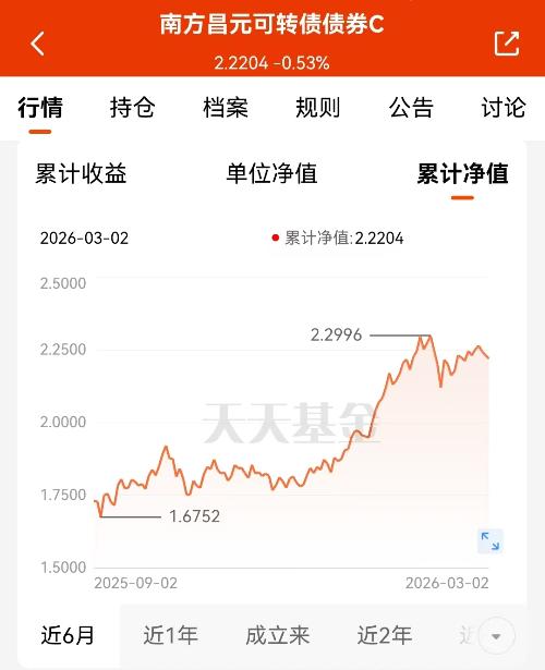 给你们指条路——看看$南方昌元可转债债券C$(006031),它可能是个折中的选项。近三月涨了24%,直接登顶同类榜首,说明短期内势头很猛。它主要玩科技可转债,市场好的时候特别活跃,不像纯债那样干看着。但咱得说实话,这玩意儿波动不小,属于债基里的激进派,净值起伏会比普通债基明显,想安稳睡觉的可能会被它折腾得睡不着,所以适合那些愿意用一点波动换潜在收益的人。#春节你是持币过节or持基?#