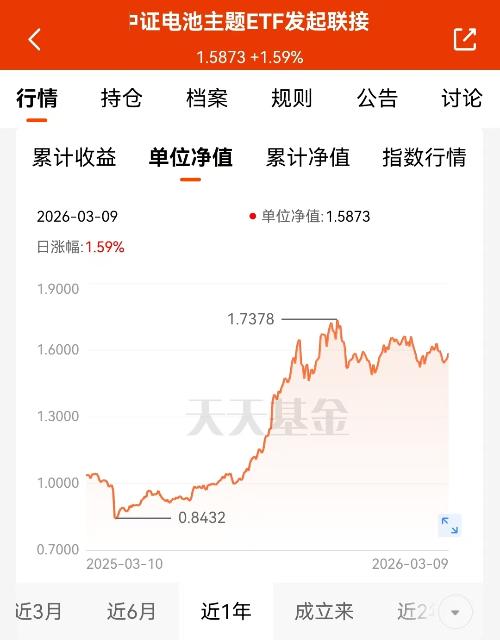 现在都说要反内卷,其实投资也一样,别老想着去挤那些已经挤破头的地方。电池这块儿,现在就是典型的“反内卷”进行时,周期还在往上走,没那么多乱七八糟的竞争。$南方中证电池主题指数发起A$(018926)就是专门搞这个的,它不用你去挑挑拣拣,直接打包了一篮子电池相关的公司,省心省力,而且最近半年表现很猛,涨了52%,说明方向选对了,这个成绩在最近这段时间里算是很拿得出手的了。#特朗普:对伊朗战事已基本结...