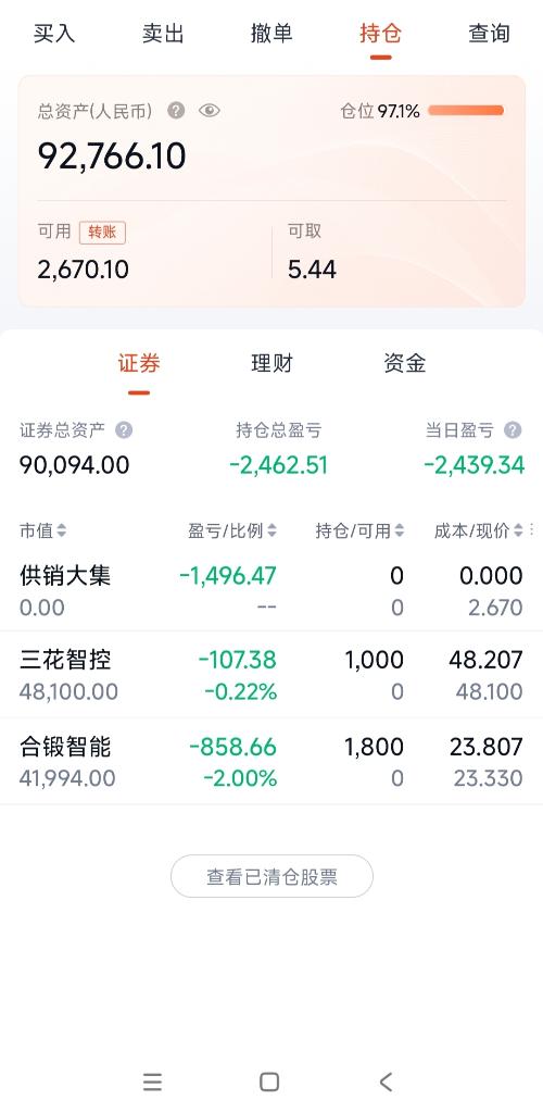 新手宝妈,挪子金库,9万入市,勇闯大A。实盘交易第66天,今日亏损2439元。今日卖出供销大集,买入三花智控和合锻智能。 今天清仓了$供销大集(SZ000564)$,这票实在太磨人,实在没耐心继续持有了——就是可惜上次卖完,隔天就直接涨停,多少有点遗憾。 $三花智控(SZ002050)$在一波大回撤后,总算重新走回上升趋势,果断入了半仓,先占个坑。 最揪心的是$合锻智能(SH603011)$,早上...