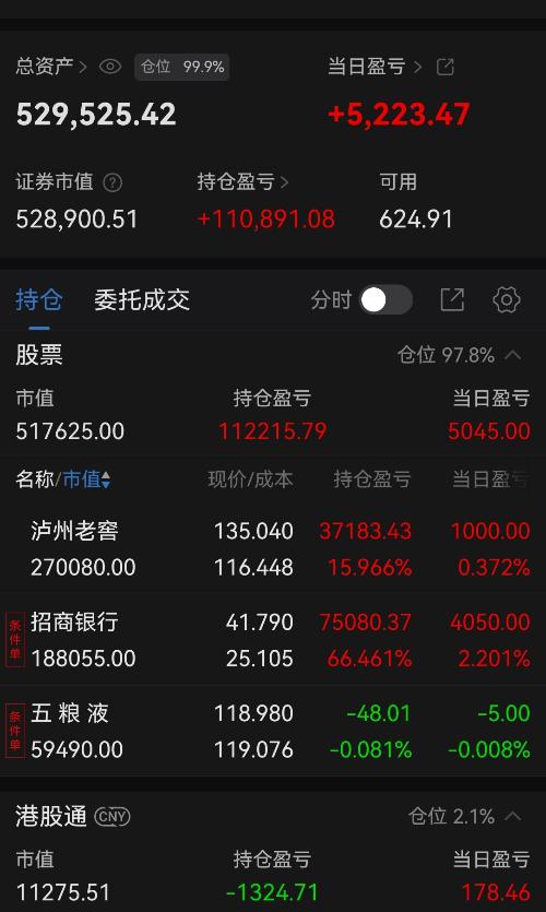 今天浮盈5223元,无操作。 $泸州老窖(SZ000568)$ $五粮液(SZ000858)$ $招商银行(SH600036)$