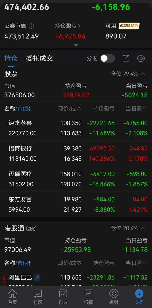 今天浮亏6158元。 上午39.9卖出500股$招商银行(SH600036)$,同一时间段内于101.3元时买入200股$泸州老窖(SZ000568)$ $阿里巴巴-W(HK|09988)$ #炒股日记#