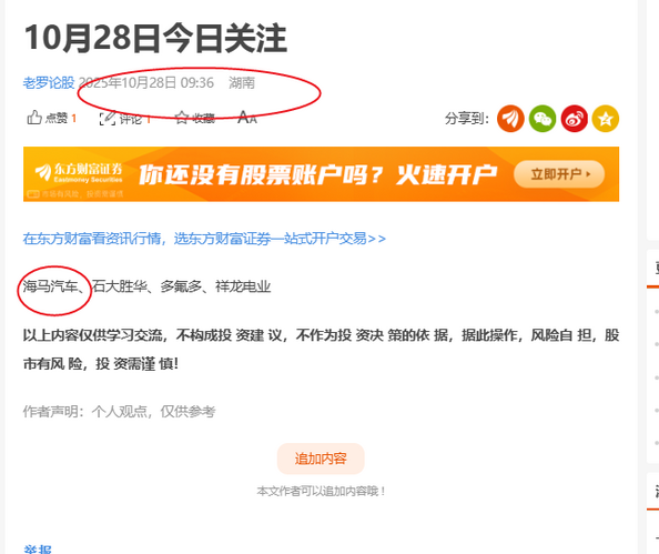 在10月28日精选的海马汽车今天强势二连板,怎么说,恭喜跟上吃肉的粉丝朋友!