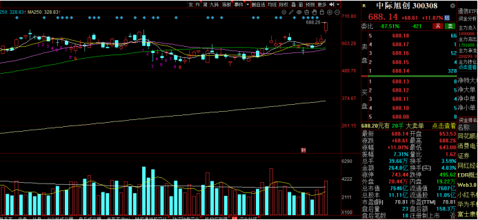 当前持仓 中际旭创:守得云开见月明,历史新高之后站上700可期 $中际旭创(SZ300308)$昨天的走势还是很给力的,现在股价也是再度创了历史新高,走的还是比较稳的,现在依然还是继续在上升通道之中,成交量也是放量明显,说明市场中的做多意愿较强,短期来看,有要开始走加速的迹象,还是维持之前的观点,后面市场中能有较好的接力,还是有望站上700的。去年中国云端AI加速器市场中本土芯片份额已升至约41%...