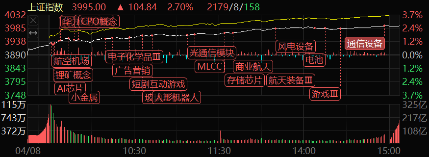 家人们,点个关注!霖哥今天直接带你们躺赢,只做低吸,不追高,不追高! 先唠唠今天这大盘,真的是彻底疯了! 沪指直接干到3995点,大涨2.7%,深成指4.79%,创业板更是飙了5.91%。 全天成交额2.45万亿,比昨天多干出8000多亿! 全场5100多只股票一起涨,只有300家跌,赚钱效应直接拉满。 一是情绪彻底点燃了,昨天还在恐慌的资金,今天全跑步进场抄底。 二是科技主线大爆发,半导体、算力...