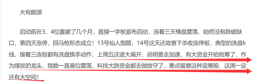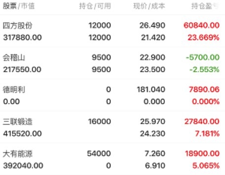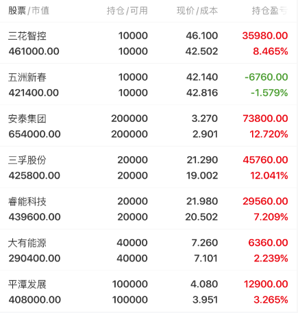 盘面概述: 今天创业板指一度涨超3%,总算有波像样反弹! 热点轮动里,煤炭持续上行,大有能源11天8板,安泰集团3连板;午后四方达、黄河旋风先后封板;燃气也没歇,国新能源5天4板;上午算力硬件活跃,剑桥科技涨停。 持仓总结及计划: 平潭发展(000592): 这只是早评里的个股,早上竞价一看量能特别足,明显有纸巾抢筹,当时就挂单,结果手慢了没打到,又不情愿追板——毕竟追板风险太高,最后眼睁睁看着它...