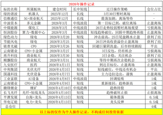 大家早上好!今天是4月13日,我是谭头! 指数观点不变,没有突破就继续等,等突破或者调整60分钟钝化; 现在的市场,无论涨跌,看易中天就行。 再聊聊聊情绪: 最近难得出现彻底结束的情况,很可能是新老交替,也就是津药三连阴,泰山连板,汇源跌停。 创业板的星辉,周五指数涨,可惜没给修复,还需要看资金的态度;如果看最高板,4板的华远。 指数第一次大涨,也就是周三节点,那就看3板,目前3个3板,一个是一字...