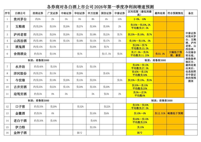 $泸州老窖(SZ000568)$$今世缘(SH603369)$$古井贡酒(SZ000596)$ 泸州老窖,26年一季度归母净利润增速,券商预测范围为负25%—负18%,结果为负19.25%,符合预期,逼近预测的上限负18%。(广发证券和中邮证券预测的比较准,预测负20%,结果负19.25%,误差0.75%) 古井贡酒,26年一季度归母净利润增速,券商预测范围为负35%—负15%,平均数负20%,结...