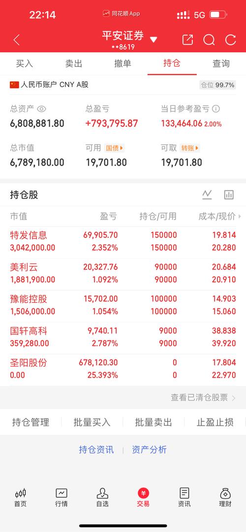 目前手上持有 000078特发信息, 002074国轩高科, 001896豫能控股, 000815美利云,目前手上这四个,做完在分享,目前就是持有等待。要下车我会通知,感谢大家的支持与信任,大家记得点赞评论转发支持豪哥,你们的支持就是我最大的动力。