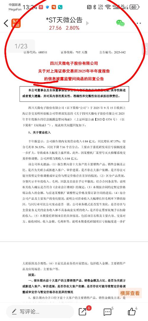 $*ST花王(SH603007)$$*ST阳光(SZ000608)$牛哥直接打电话咨询的,阳光2月13日就收到年报问询函,走势一般很容易理解,问询函老玩家都知道,起码至少延期一次,叠加去年至今阳光涨幅,走势一般很容易理解,资金高位3.7砸盘跑路也是印证牛哥的判断。$*ST天微(SH688511)$天微是涨幅太大,失去了性价比!其他没啥好说,财务数据更正,轻的收问询函,重的立案,应该不算严重!松发还...