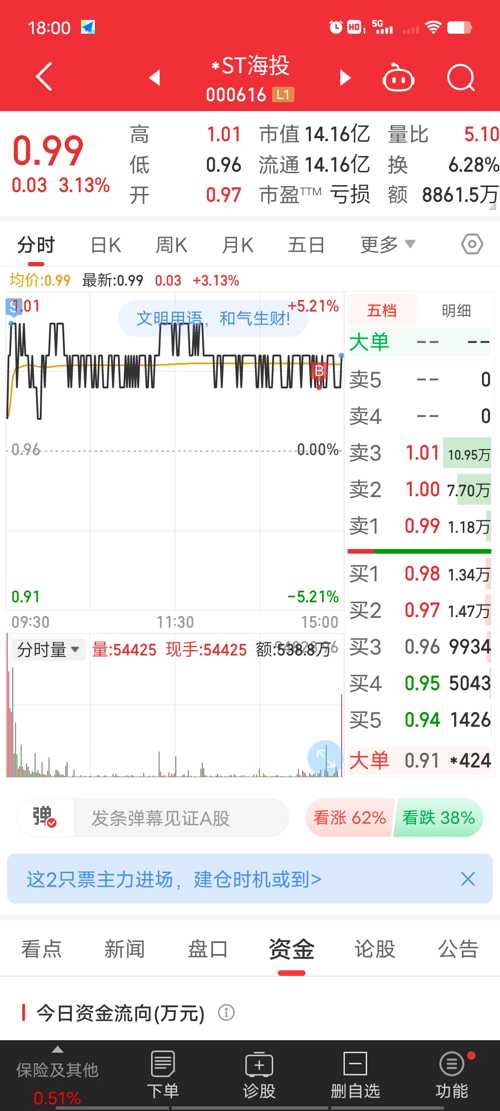 $*ST海投(SZ000616)$记得投票哦