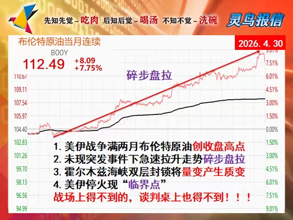 本轮击穿整数关口的回调,是黄金坑还是万人坑?行情正在倒车接人,抑或只是一场虚假繁荣?答案就在华电能源、中油资本、东方新能这些热点里,接下来它们的行情是否延续,或者有没有能接替它们的新热点出现,对于后期行情的走向,至关重要。霍尔木兹已经毫无疑问的给慢牛按下了暂停键,后期是出现像失控的卡车冲下悬崖式的恐慌行情,还是无处可去的外资涌入世界上最安全的市场而导致新一轮大牛,取决于接下来一段时间内能否出现足以...